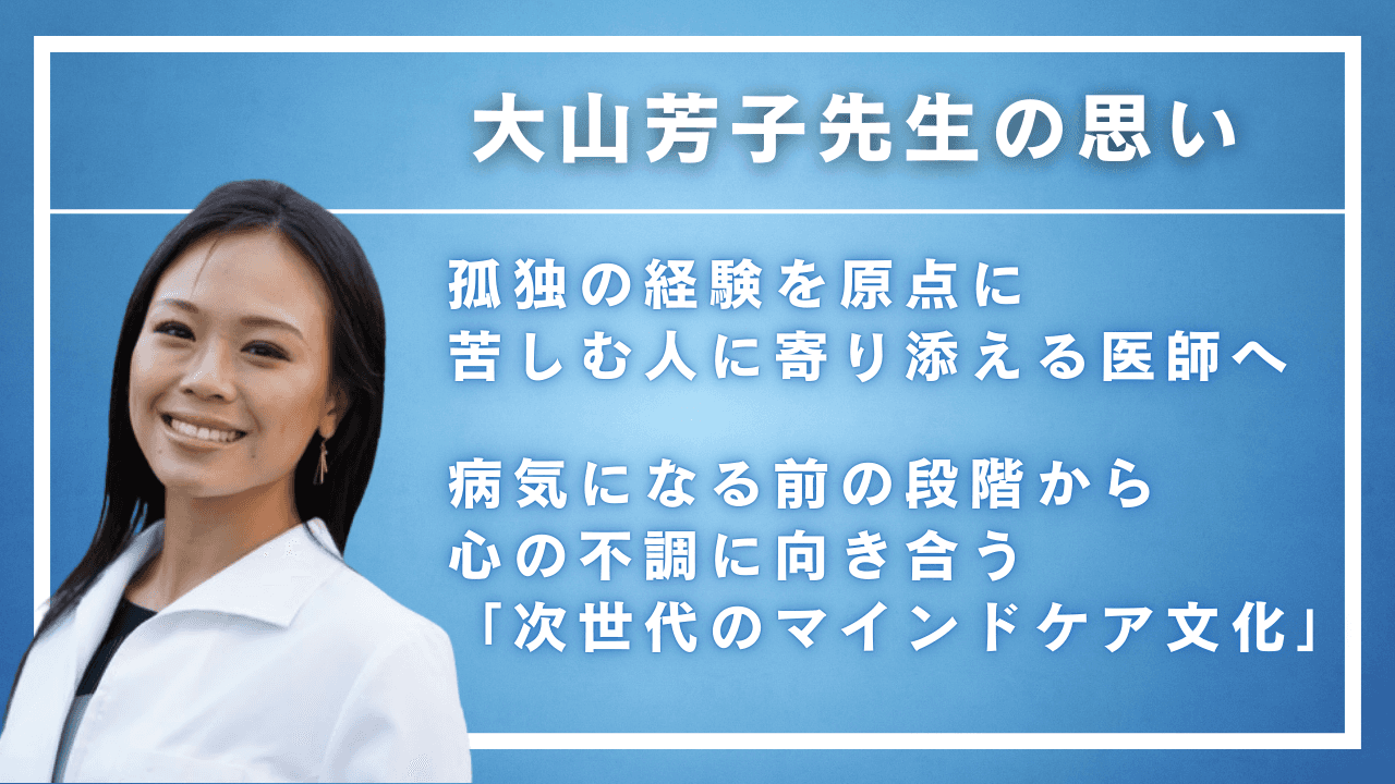 大山先生 10代のころに医師に対して違和感を覚えたことがきっかけでした。当時、自分自身が心と体が深く繋がっているということを、まさに自分の身をもって体感していたんです。親を含め、誰にも理解してもらえないような孤独や苦悩を抱えていました。